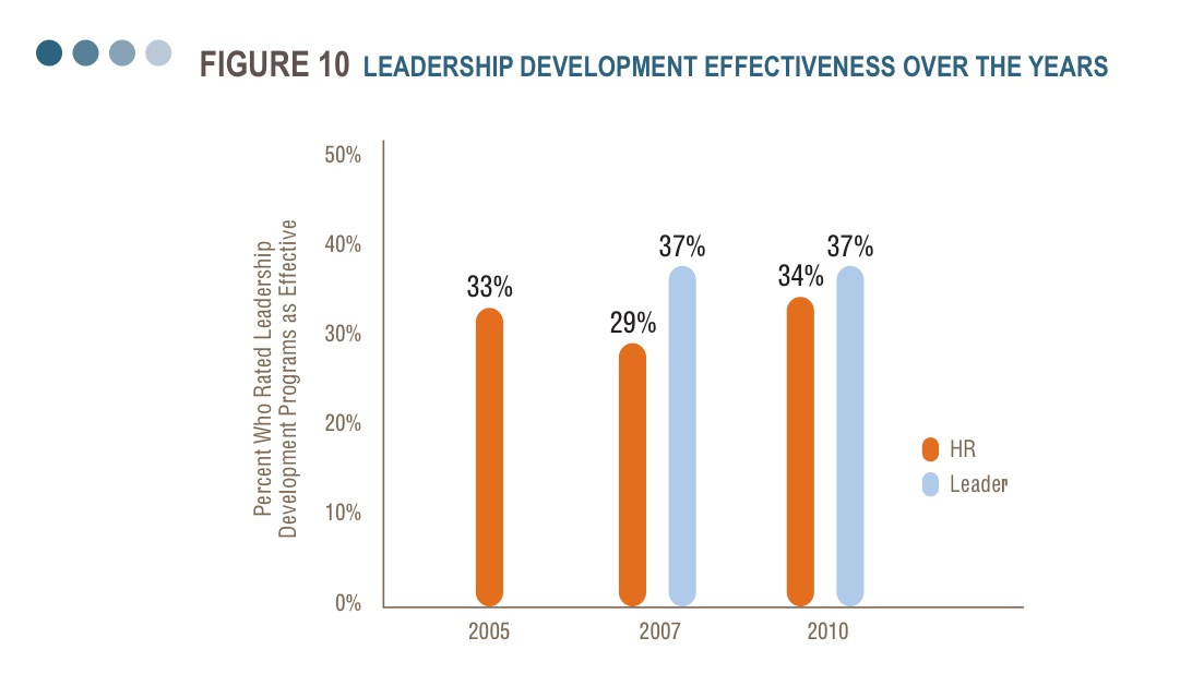 Liderlik yetiştirme programlarının etkili bulanların yüzdesi  %37, üstelik bu rakam 2007’den beri bir değişim göstermemiş.