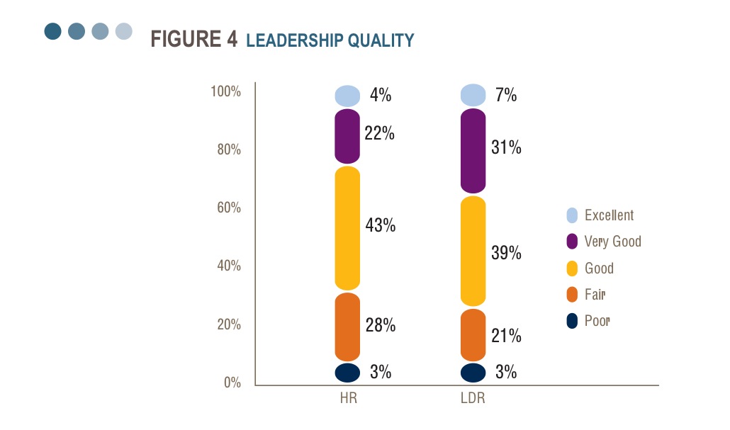 DDI Group’un 74 ülkeden 1897 İK profesyoneli ve 12423 lider ile yaptığı araştırmaya göre, çalıştığı kurumdaki liderlik becerisini iyi veya çok iyi bulanların oranı 38%.