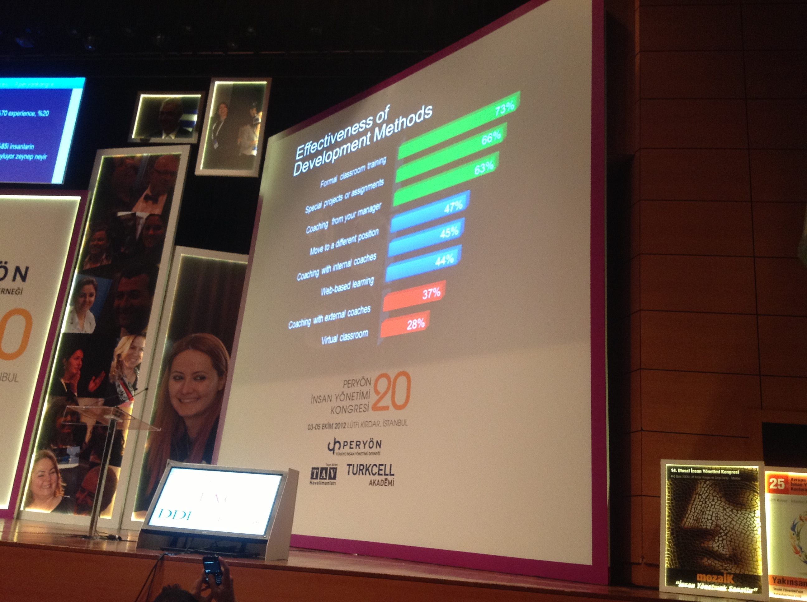 Bu istatistiklerin arkasından size ‘liderlik eğitimi sınıfta verildiğinde etkin olur mu?’ sorusunu yöneltsem (ki bu soru konferansta konuşmacı Richard Wellins tarafından 700 kişilik seyirciye soruldu), ne derdiniz? Bizim salonda sadece 2 kişi el kaldırdı.