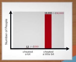 Ariely en çarpıcı sonucu sona saklamış. Aşağıdaki grafiğe bakarsanız, Ariely araştırması boyunca 18000+ denekle çalışmış.
