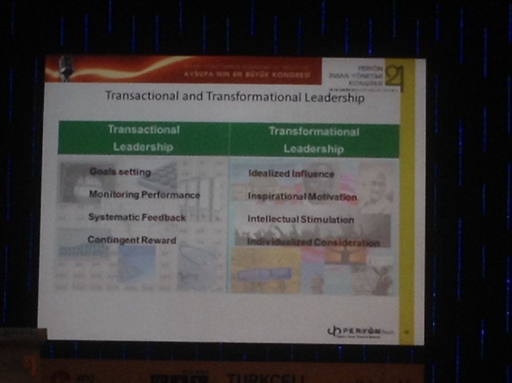 Prof. Heike Bruch’un sunumunda en ilgimi uyandıran yer ‘transformational leadership’ kısmı oldu. Sunumda transactional leadership (etkileşimci liderlik) ile transformational leadership (dönüşümcü liderlik) kıyaslandı: