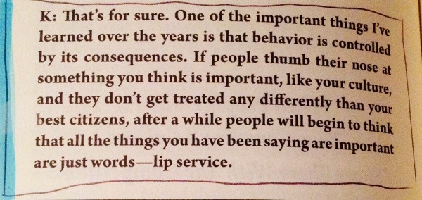 Kötü yapılmış bir işi görmezden geldiğinizde, aslında o kişiyi ödüllendirirsiniz, çünkü kötü performansı için bir bedel ödemeyi beklerken rahatı bozulmadan hayata devam etmektedir. O işi iyi yapan kişiye devrettiğinizde de onu cezalandırmış olursunuz, çünkü beklediğinden daha fazla iş yüküyle başbaşa kalır