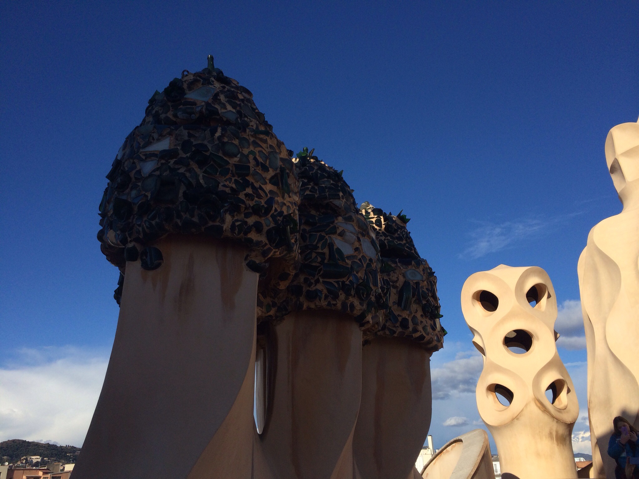 Aşağıdaki figür bir diğer ev La Pedrera, nam-ı diğer Casa Mila’nın çatısından. Kırık şişe camlarından oluşuyor.