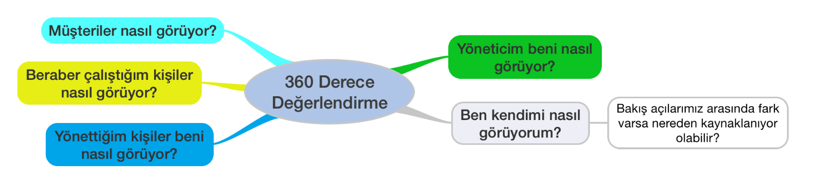 Not: 360 Derece Değerlendirmenin de kör noktaları var tabii. Göreceli olarak insanlarla daha az iletişim kurması gerekenler, çıkar çatışmasının dışında kalan işler yürütenler için çok doğru sonuçlar üretmeyebiliyor.