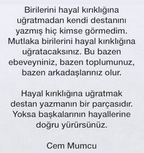 Edit: son söz değişim için çabalayanlara ve etrafına kabullendirmekte zorlananlara Cem Mumcu’dan gelsin: